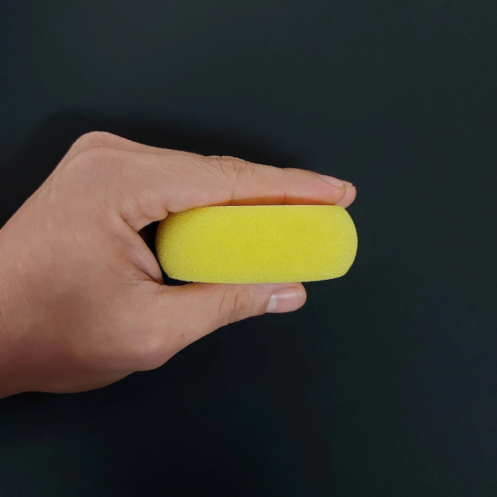 Esponja sintética redonda usada para alisar e umedecer peças de argila no torno, escultura ou modelagem manual.